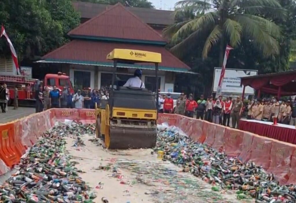 “Di Tangerang Selatan itu minuman beralkohol 0% dilarang, tidak boleh. Jadi setiap minuman beralkohol, berapa persen pun, kita tertibkan. Yang disita ini tentu yang lebih dari 40%. Ini hasil operasi dari awal tahun 2025 sampai hari ini,” kata Benyamin usai memimpin pemusnahan miras di halaman kantor Satpol PP, Rabu (26/11/2025).