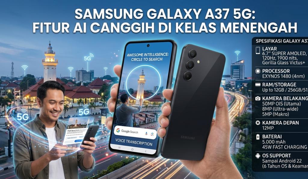 BANTENPRO.CO.ID – Samsung Electronics kembali menggebrak pasar ponsel kelas menengah dengan meluncurkan suksesor seri A terbarunya, Samsung Galaxy A37 5G.
