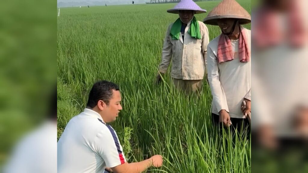 “Gimana kabarnya sawahnya bah?,” Arief menyapa petani tersebut. Kemudian dijawab, “baik baik pak,” tuturnya.