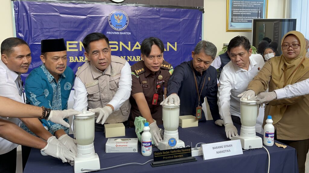 Pemusnahan seluruh barang bukti dilakukan dengan cara dilarutkan menggunakan blender, kemudian dibuang ke saluran pembuangan. Proses ini disaksikan langsung oleh perwakilan kejaksaan, pengadilan, dan awak media untuk memastikan validitas dan akuntabilitas.