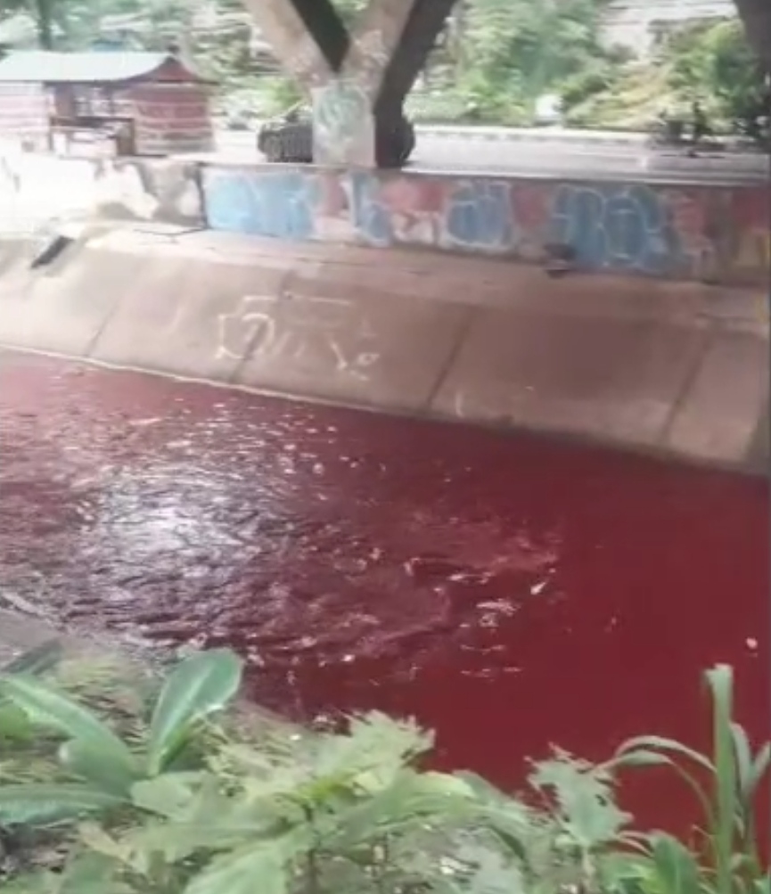 “Kejadian sekitar jam 3 sore, sampai saya pulang jam setengah 6 masih merah airnya, tapi tidak bau,” ujar Aldi, Minggu (5/10/2025).
