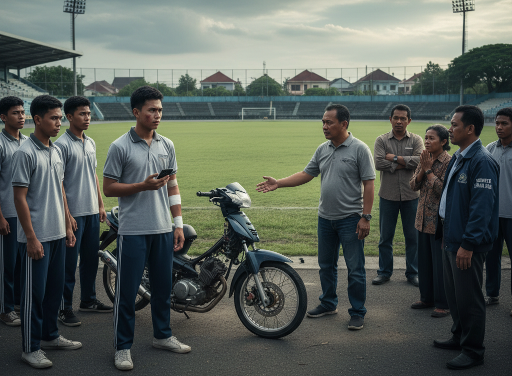 “Warga sekitar stadion merasa terganggu dengan suara knalpot brong kendaraan korban usai latihan. Ternyata yang membawa motor knalpot bising itu adalah salah satu peserta berbaris. Ada siswa lain dari luar (SMAN 1) yang juga ikut serta dalam latihan ini,” kata Arif.