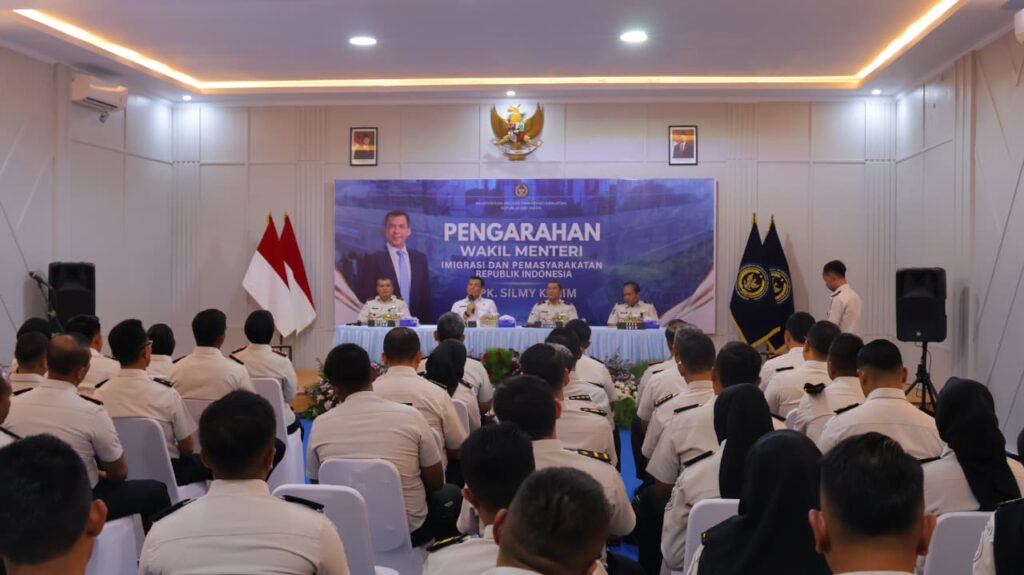 SERANG, BANTENPRO.CO.ID – Kepala Kantor Imigrasi Kelas I Non TPI Serang, I Gusti Agung Komang Artawan, mengikuti pengarahan Wakil Menteri Imigrasi dan Pemasyarakatan (IMIPAS), Silmy Karim, di Lembaga Pemasyarakatan (Lapas) Kelas IIA Serang, Senin (6/4/2026).
