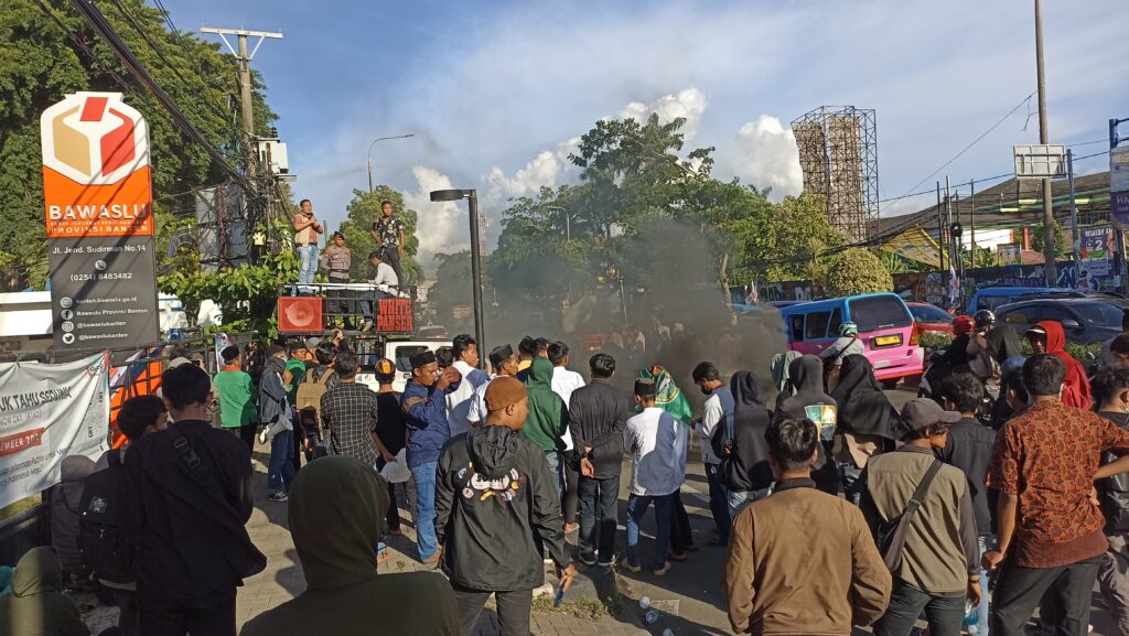 Masa aksi di depan kantor Bawaslu Provinsi Banten