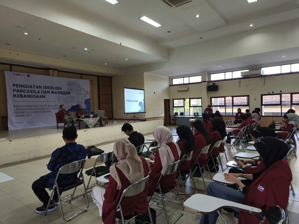 SERANG, BANTENPRO.CO.D – Puluhan mahasiswa di Universitas Pendidikan Indonesia (UPI) Kampus Serang diberikan penguatan ideologi pancasila dan wawancara kebangsaan. Hal itu untuk memperkuat persatuan dan kesatuan bangsa, memberikan wawasan, hingga menangkal ancaman terhadap bangsa dan negara.