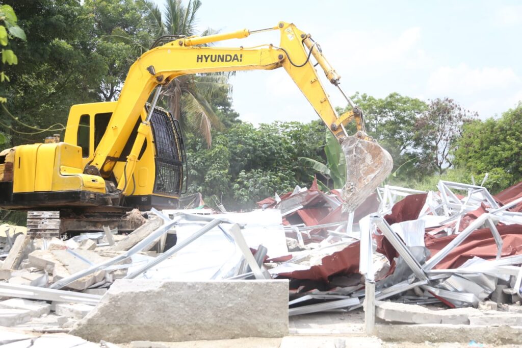 Bangunan tersebut diratakan berdasarkan surat izin yang dikeluarkan tidak sesuai dengan kegiatan usaha yang berjalan pada tempat tersebut.