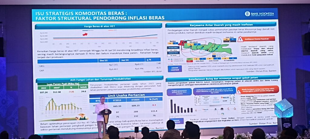 Hadir dalam Rakorda ini, PJ Gubernur Provinsi Banten Al Muktabar yang juga sekaligus membuka Rakorda TPID dan TP2DD mendorong pertumbuhan ekonomi yang berkualitas melalui penguatan stabilisasi harga pangan dan perluasan digitalisasi ekonomi keuangan daerah.