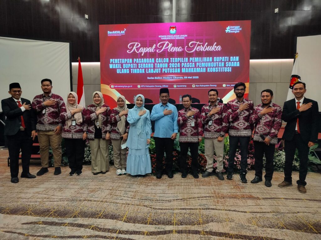 SERANG, BANTENPRO.CO.ID – Komisi Pemilihan Umum (KPU) Kabupaten Serang resmi menetapkan pasangan calon Bupati dan Wakil Bupati Serang, Ratu Zakiyah dan Najib Hamas, sebagai pemenang Pilkada Serang 2024.
