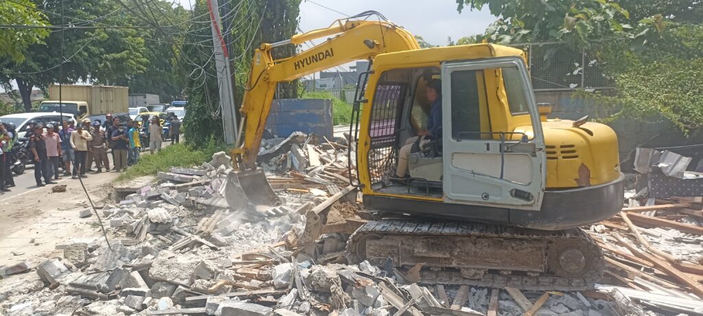 “Hari ini kami membongkar bangunan yang tidak sesuai dengan perizinannya alias bangunan liar, dua bangunan kami bongkar” kata Yedi.