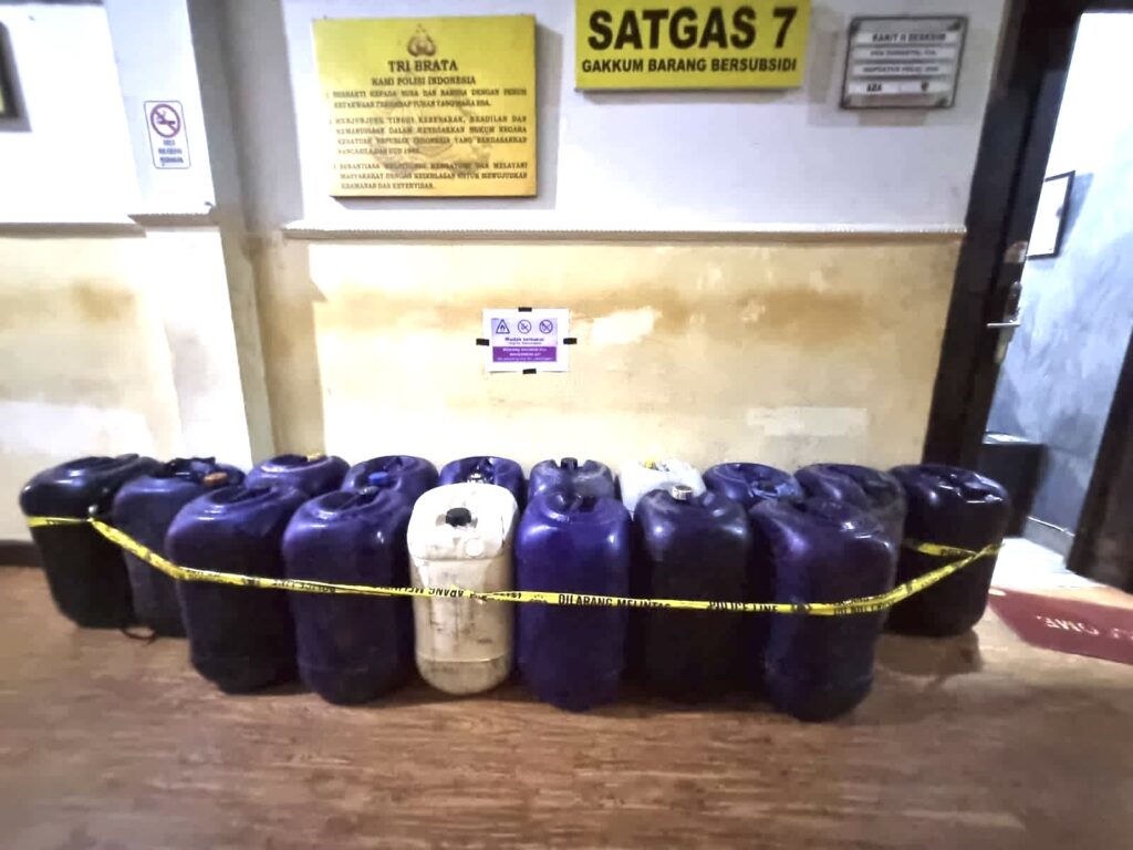 Dengan total yang diamankan saat ini yakni 16 jerigen berukuran 35 liter diantaranya 14 jerigen dalam keadaan terisi penuh dan 1 jerigen dalam keadaan kosong serta 1 jerigen terisi sekitar 10 liter, yang saat ini jerigen – jerigen tersebut berada di ruang unit 2 Satreskrim Polres Cilegon, dan kendaraan yang diamankan berada di Polsubsektor Gerogol Polres Cilegon.