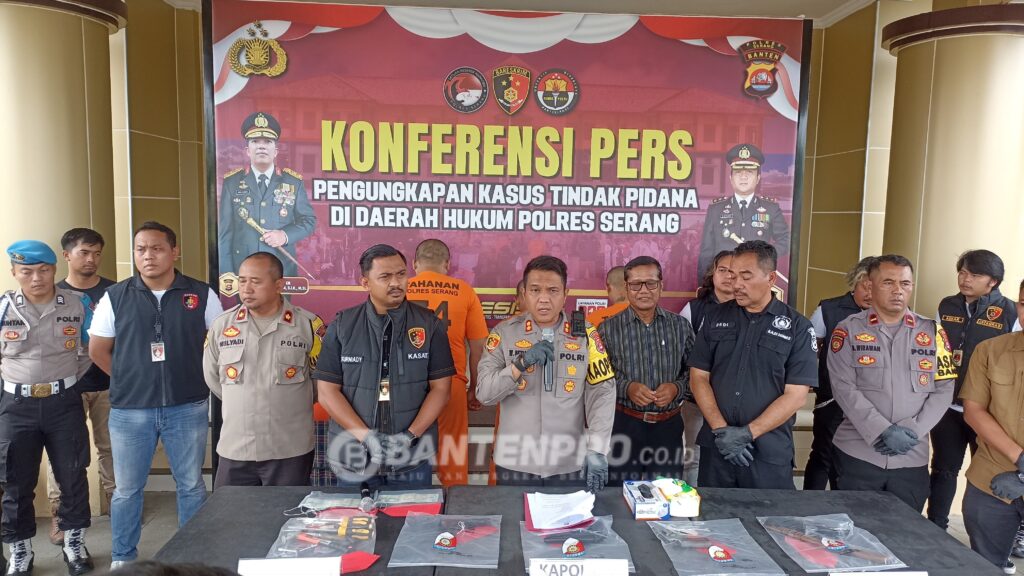 Kapolres Serang AKBP Setiawan menjelaskan kronologi tindak pidana pencurian kendaraan bermotor diwilayah Hukum Polres Serang Kabupaten