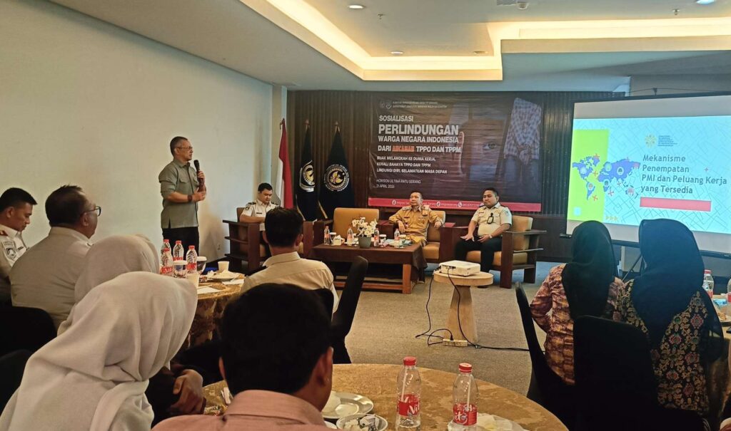 Sosialisasi yang digelar di Hotel Horison Ultima Ratu, Kota Serang ini mengusung tema “Bijak Melangkah ke Dunia Kerja, Kenali Bahaya TPPO dan TPPM, Lindungi Diri, Selamatkan Masa Depan”.