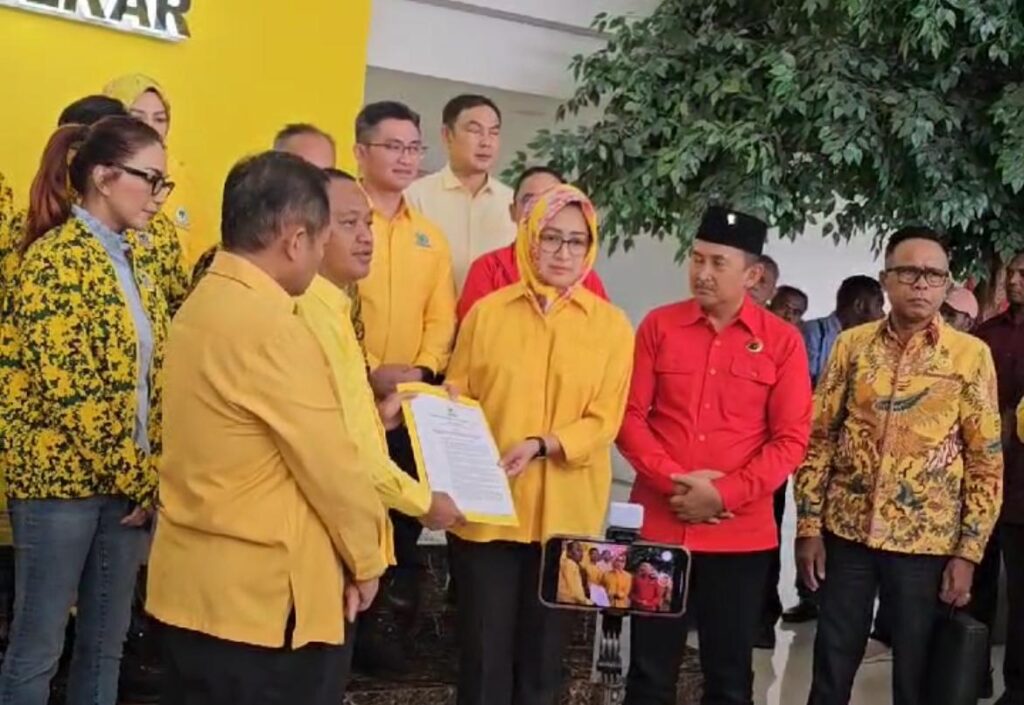 “Terima kasih kepada DPP Partai Golkar beserta dengan dewan Pembina dan seluruh jajarannya yang Alhamdulillah sudah memberikan B1 KWK kepada saya dan juga Pak Ade Sumardi sesuai dengan step yang pernah dikeluarkan oleh DPP Partai Golkar dan tentu Terima kasih juga kepada ketua DPD Golkar Banten yang terus mengusulkan dan mengkomunikasikan,” kata Airin usai menerima surat dukungan di Kantor DPP Golkar, Slipi, Jakarta, Selasa 27 Agustus 2024.